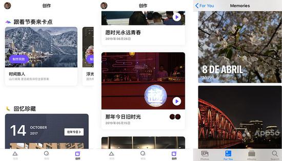 在‘创作’栏目下,可以看到系统自动根据时间和地点自动生成的卡点视频,分为‘回忆珍藏’和‘全部故事’两个类别,前者类似于 Google Photos 重温去年今日时光的‘回忆’功能,后者与 iPhone 相册中的‘为你推荐’十分相似,但如果包含的照片过多,打开后可能会出现‘卡点失败’的情况。就个人而言,我还是更喜欢 iPhone 中回忆视频的转场和过渡效果,可能是我老了吧。
